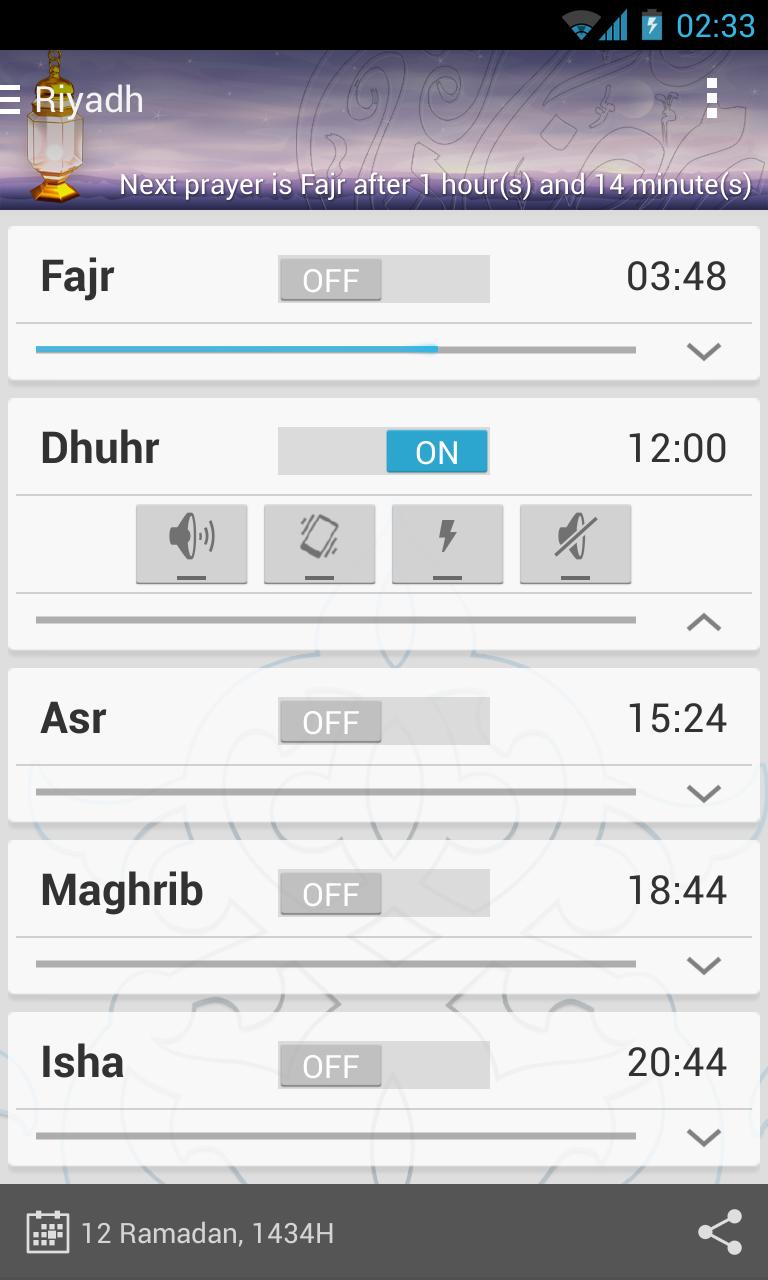 Aplicação para as notificações de tempos de oração (Adhan, Azan). e modo silencioso durante os tempos de oração.